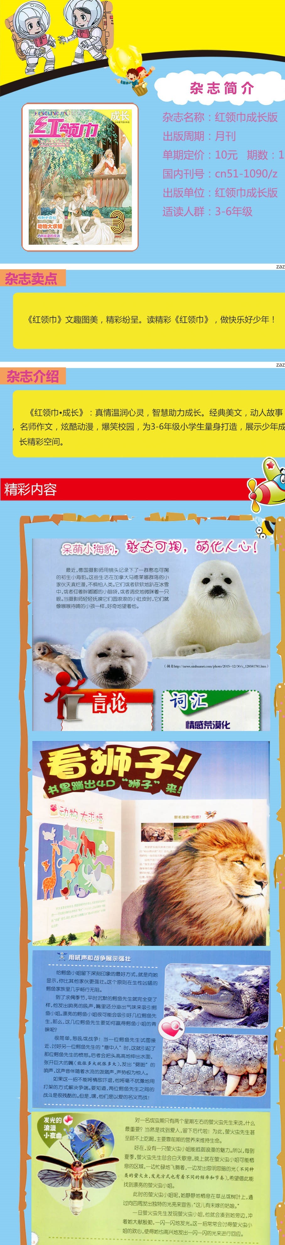 其中《红领巾·成长》适合3-6年级小学生量身打造,展示少年成长的精彩空间。文趣图美,精彩纷呈,是小学生、教师、家长所熟悉和喜爱的刊物。读精彩“红领巾”,做快乐好少年!