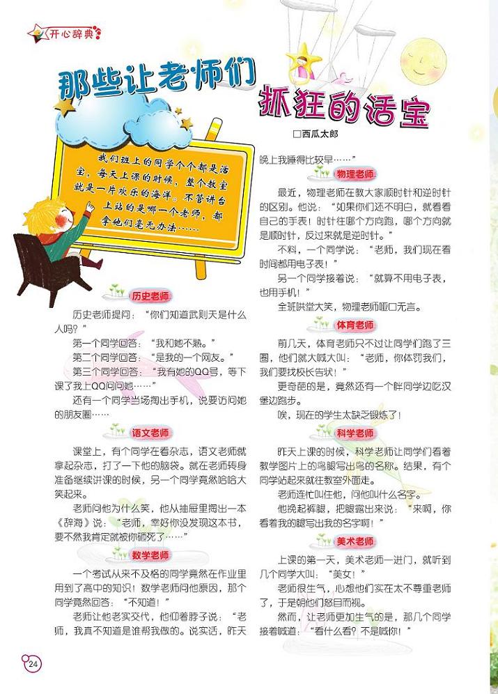 国学很枯燥吗?NO!国内第一本用幽默方式讲述国学的少儿期刊,轻轻松松与经典对话,开开心心与智慧交友。最爆笑的漫画,最历史的故事;最幽默的聊天,感受中华五千年的人文精神,开发心智潜能,教出君之淑女,培养未来领袖。