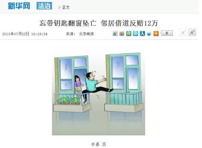 今年6月21日上午,陕西商南县某小区,9号楼304室的女住户尹某到家门口后,发现未带钥匙,便找了302室的杜某、楼上404室的简某及10号楼的樊某帮忙,并从樊某家找到两块旧窗帘布系成“安全绳”,欲从404室的阳台翻入自己家中。