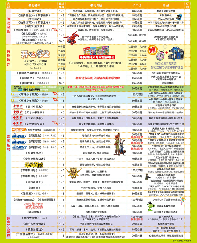 ①所有赠刊、玩具均随已征订书刊发送。若要提前收到,自付运费,请先联系客服。