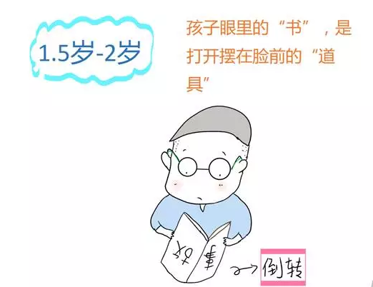孩子眼里的“书”,是打开摆在脸前的“道具”(模仿父母认真看书)。