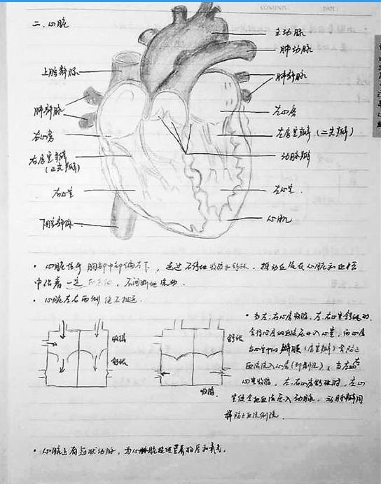 有一次,徐莹学到了“人体心脏”这一课,但是对于心脏结构知识点记得很辛苦。徐爸爸一看,便抽空去了两个地方:医疗器械零售店和菜市场。徐爸爸从医疗器械零售店带回了一把薄如蝉翼的手术刀,从菜市场买回了一个红红的猪心。他戴好手套,在家里厨房的切菜板上,给女儿上起了心脏解剖课。“猪心和人心是最相似的,都有左右心房和左右心室。我边解剖边说,她马上就明白了。”徐莹的爸爸徐伟祥是浙大一院胃肠外科的医生,是从农村走出来的大学生,用他自己的话说,教学就要生动。在爸爸的帮助下,徐莹很快梳理出了知识点,画出了直观准确的心脏结构图。