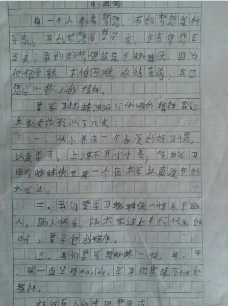 【少儿期刊】上面一看就知道是一篇小学生作文,不过从这样的一篇简简单单作文里面,你看到能想到了什么?我们从小也有写过这样类似的内容,数年之后,我们再来看自己小时候写的那些东西,相信你肯定会情不自禁的发笑,是的,当我看到这篇作文后,我也笑了。不过笑了之后,我突然想了很多,之所以我们现在写不出这样的文字内容了,不是因为我们年龄大了,而是因为我们心灵老了。都说小学生的心灵是最纯洁的,也不主要是因为他们年龄小,而是他们处于刚记事的阶段,你给他们输入了什么样的心灵,他们的心灵就是什么样的。所以说,小学生的心灵教育尤其重要。