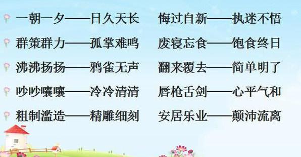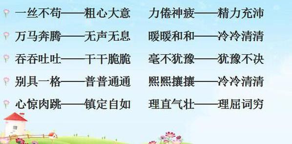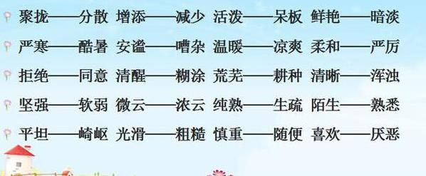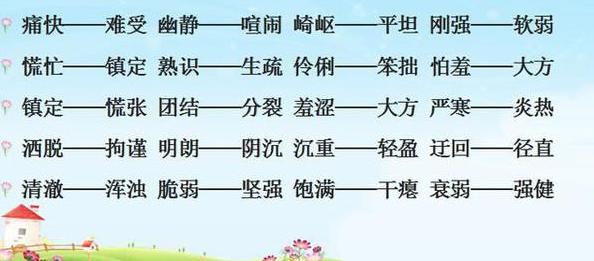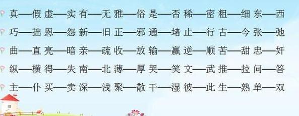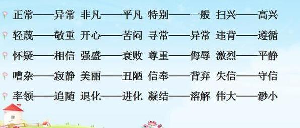【少儿期刊】反义词可以说是让多数同学头疼的一个知识点,说实话这个知识就连很多老师都很为之郁闷,因为有的词就是有好几个反义词,而且每一个都可以说是正确答案,这就为同学的记忆和掌握增加了难度,但恰恰就是因为这一点也为同学降低了难度。