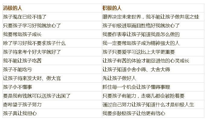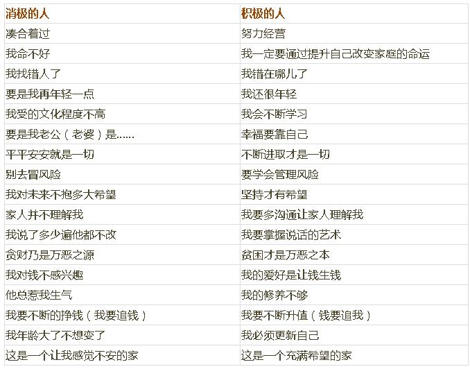 思维决定命运,思维决定心态,思维决定教育方式,思维影响孩子的前途。一个人在原生家庭中继承和熏陶的最重要的是思维方式。积极思维的人容易培育出积极思维的孩子,消极思维的人,容易造就消极思维的孩子。下面我们就来看看消极的人和积极的人他们的思维方式有何不同?
