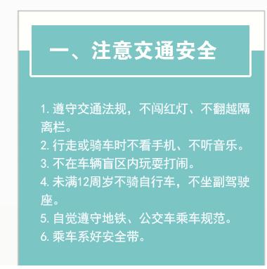 少儿期刊少儿图书少儿书刊随着天气日渐转热和暑期的到来,中小学生安全事故再次进入高发期。家长们一定不能放松孩子们的安全教育和管理,珍爱生命,远离危险~~今天我们一起去看看 “中小学生暑期安全提示36条”,它从交通安全、预防溺水、居家安全、娱乐安全、旅行安全、心理安全六个方面提出实用的安全建议,小朋友们要牢记哦~~