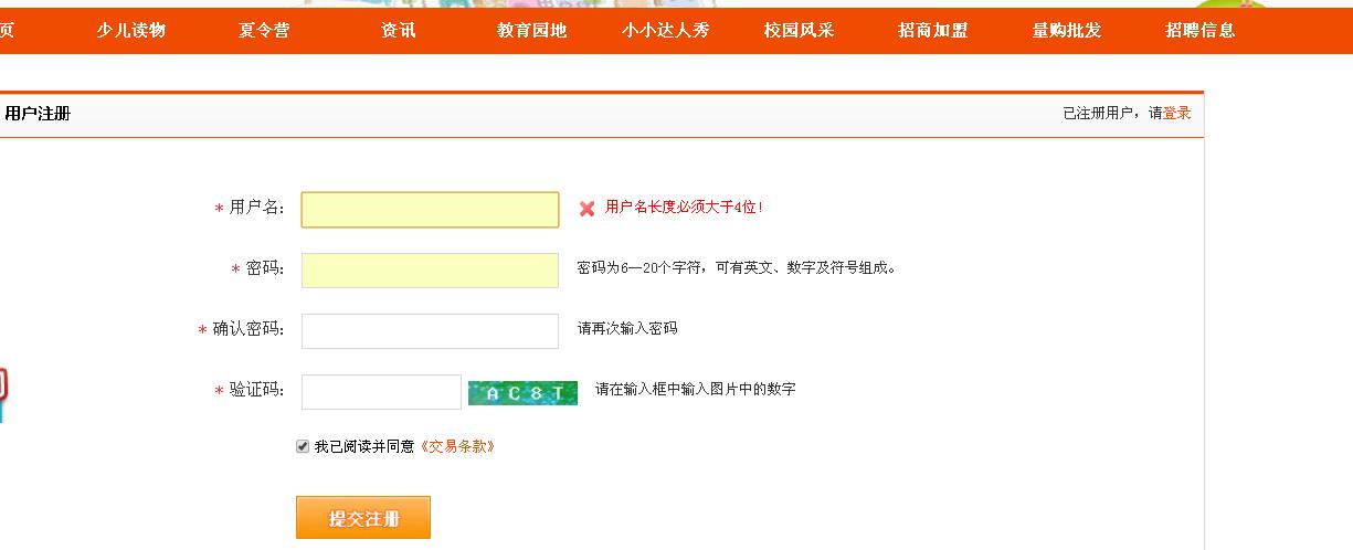 注:用户名可字母(区分大小写)、数字组成,用户名长度必须大于4位!