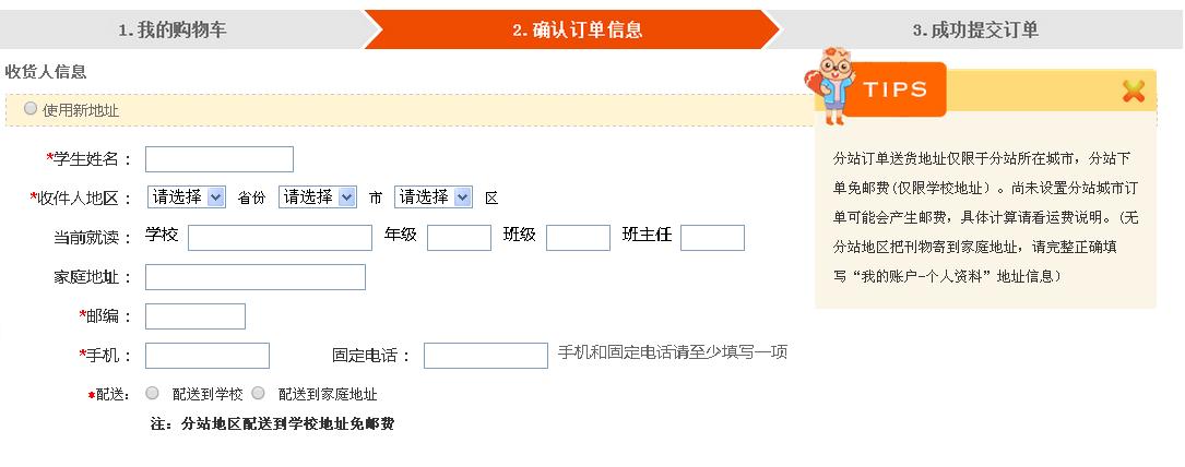 3、点击结算,填写或选择学校收货地址,支付宝付款