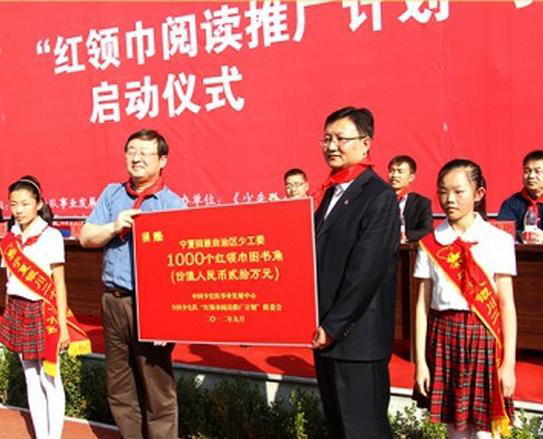 为引导广大少年儿童树立爱读书、读好书的良好习惯,培养善读书、活读书的意识,加强文化产品的创造和推广,为广大少年儿童提供更优质、便捷的文化服务,2012年9月25日,由中国少先队事业发展中心和宁夏自治区团委、少工委共同举办的“红领巾阅读推广计划—宁夏行”启动仪式在银川市第二十一小学举行。中国少先队事业发展中心副主任王溪,自治区团委副书记佘瑞东,自治区少工委副主任、综治办协调处副主任毕超等出席活动,来自银川市部分学校的校长、大队辅导员、少先队员代表和银川市第二十一小学全体师生共计2000余人参加了启动仪式。