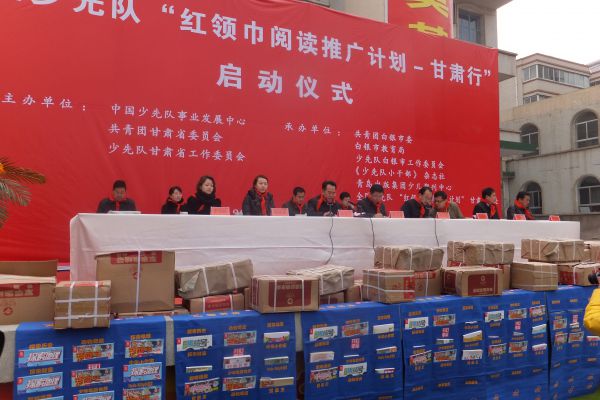 2012年11月30日,由中国少先队事业发展中心、甘肃团省委、省少工委、白银团市委、市少工委共同主办,《少先队小干部》杂志社、青岛出版集团承办的“红领巾阅读推广计划—甘肃行”启动仪式在甘肃省白银市第四小学举行。中国少先队事业发展中心主任李文革同志,甘肃团省委副书记、省少工委主任李西新同志,白银市委副书记、组织部长宋奋吉同志以及白银团市委、市教育局、市少工委、《少先队小干部》杂志社、“红领巾阅读推广计划”组委会、青岛出版集团有关负责同志和白银市部分学校校长、辅导员、少先队员参加了启动仪式。