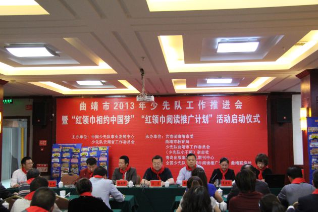 201359日,由中国少先队事业发展中心、共青团云南省委、云南省少工委、共青团曲靖市委、曲靖教育局共同主办,《少先队小干部》杂志社、青岛出版集团承办的“红领巾阅读推广计划—云南行”启动仪式在云南省曲靖市曲靖宾馆举行。中国少先队事业发展中心副主任王溪,曲靖市教育局副书记吉云刚,曲靖市团市委副书记李建玲,曲靖市少工委张超群副主任,青岛出版集团少儿期刊中心总编辑李茗茗,青岛出版集团少儿期刊中心副总编辑黄东鸣以及曲靖市教育局各少先队工作分管领导、各县市区少工委主任、市直各小学校长和少先队大队辅导员以及麒麟区城区小学校长和少先队大队辅导员等参加了启动仪式。