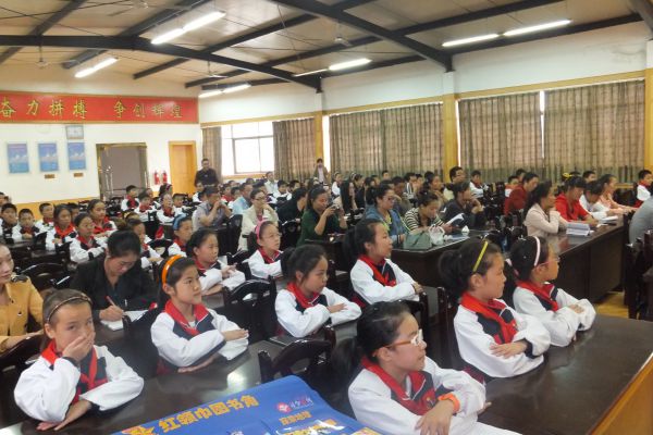 新沂市政府教育督导室副主任房树仲首先讲话,他说,“红领巾阅读推广计划”将紧紧围绕少先队组织的根本任务,开展一系列工作:推荐一批优秀书刊,开展一批主题互动、征文、故事演讲展示、读书笔记展示等形式多样的“红领巾阅读风采”展示活动;指导学校设立读书节,开展班队阅读日等读书活动,建设一批“红领巾阅读推广”活动示范校;组织校长、教师、辅导员等相关人员,采取儿童阅读推广、专家讲座、参观交流等形式举办公益推广活动。